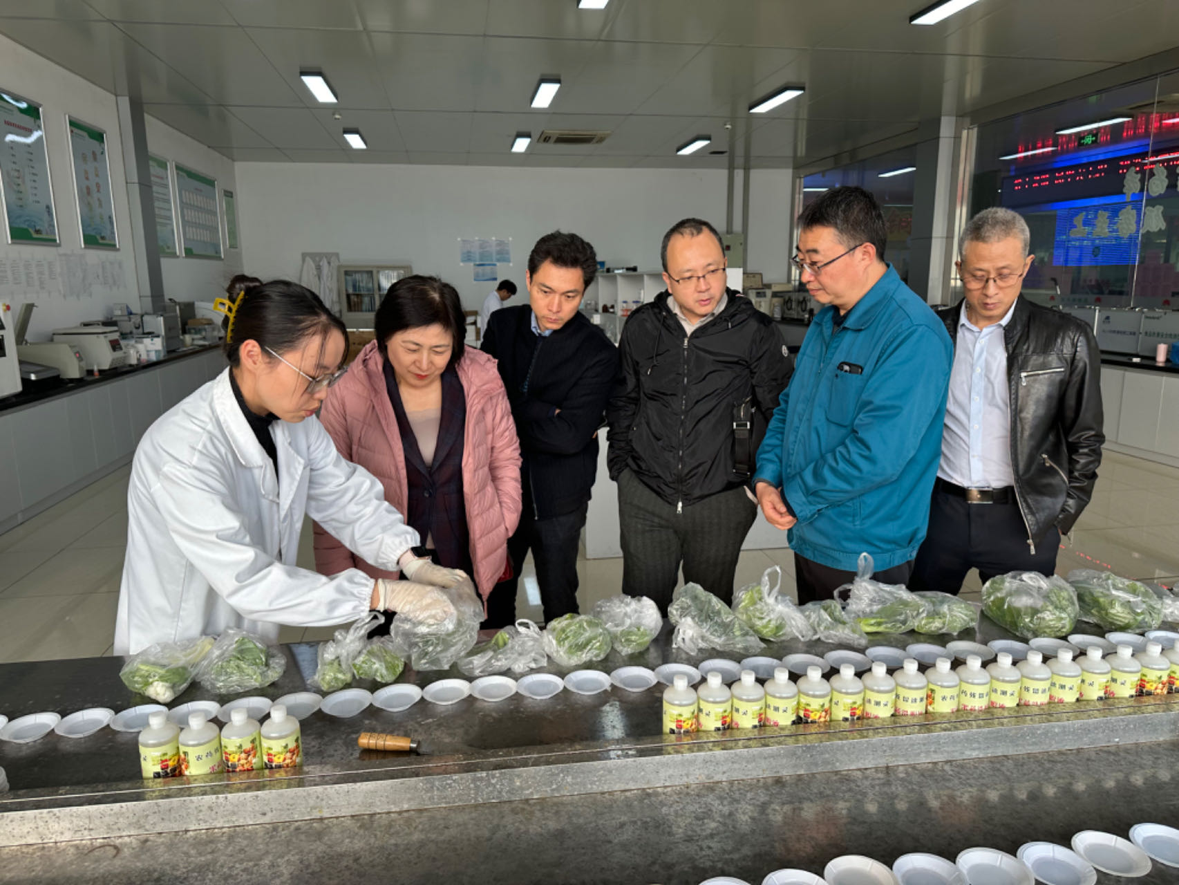朝阳集团董事长张庆卿先生及股份班子成员热情接待了来访团队,带领来访团队先后参观考察朝阳陈列馆、信息中心、检测中心、结算中心、蔬菜、水果两大市场、冷库及粮油市场,重点介绍了企业的发展历程、管理模式及新系统上线运行情况,来访人员对市场的全程电子化交易、溯源体系建设、信息化平台发展等方面表示高度的赞誉。