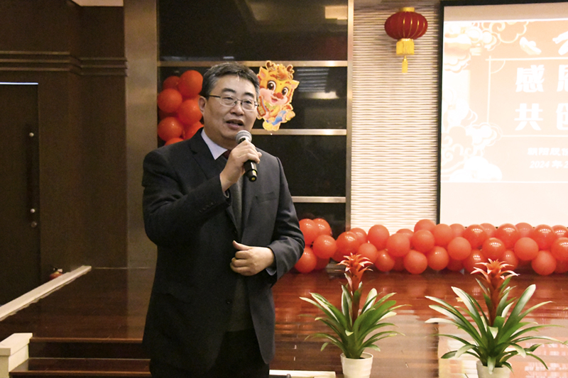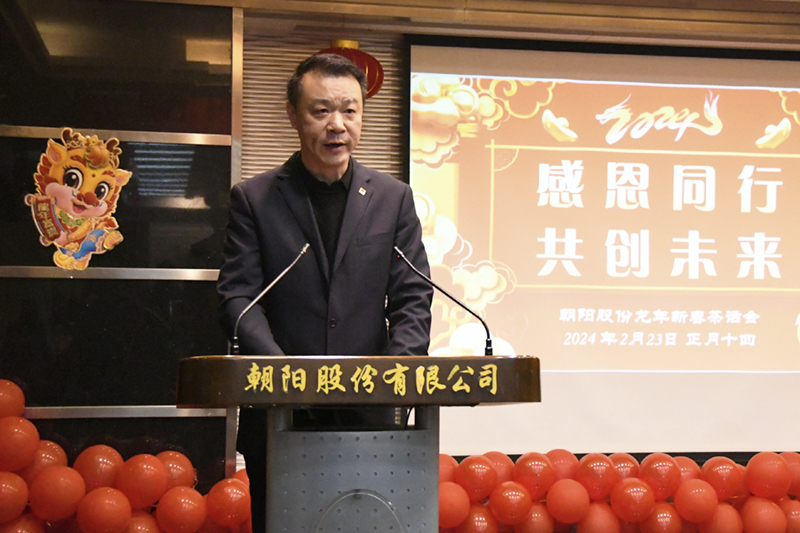 集团董事长张庆卿先生发表新年祝词。围绕“感谢”“敢拼”“实干”三个关键词鼓励广大客商会员继续与朝阳事业相依相伴,共同成长,在各自领域业绩显著、事业发展热辣滚烫。他指出,一是要感谢大家与朝阳股份风雨同舟,为保障市民“菜篮子”“果盘子”量足价稳、安全供应而辛苦付出,新的一年朝阳将以更大的返利力度支持客商会员,实现多方共赢;二是要敢于竞争、敢拼敢闯,希望大家与朝阳市场并肩携手,互动互通,互帮互利,努力拼出更精彩的龙年业绩;三是要以实干开创新局,市场将不断发展智改数转科技优势,扩大服务的深度、广度和精准度,抓实干重实效,让客商、会员、市场共同做大做强做长远。