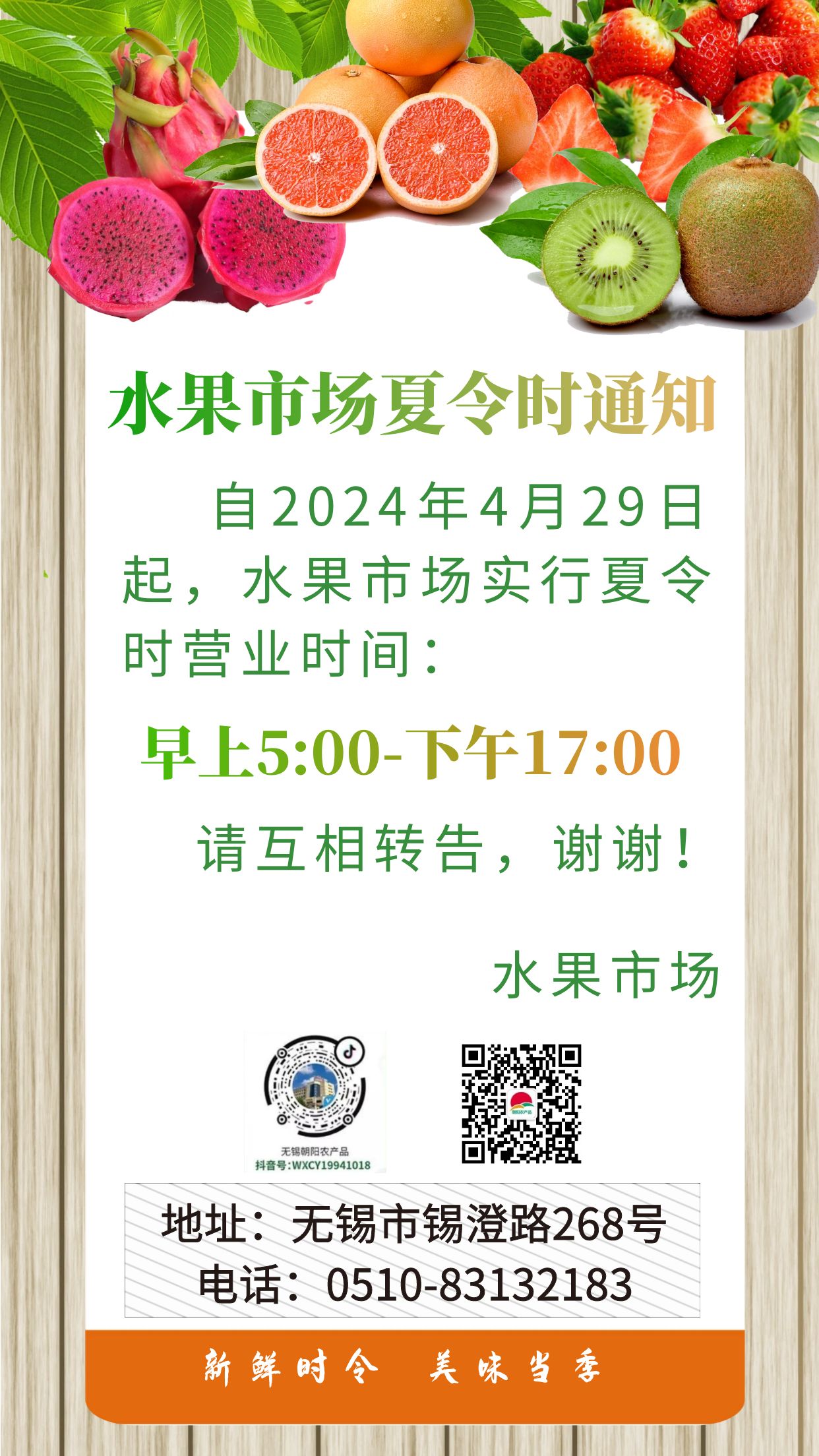 朝阳股份水果市场营业时间调整通知