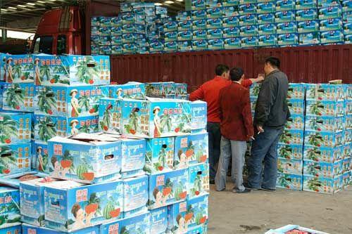 一位山东客商高兴地说:今天到货的三万公斤伊丽莎白甜瓜已经销售二万公斤,收益着实不错。