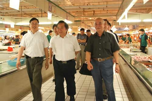 6月4日上午,无锡市政协主席贡培兴率队考察朝阳农贸市场。朝阳集团张海良董事长、杨兴德总经理和王爱群副总经理陪同实地参观了朝阳农贸市场,并向贡主席及其一行介绍了朝阳农贸市场的整体布局、经营情况、管理情况以及涉及民生的农产品农药残留检测等情况。特别是朝阳农贸市场严格把好放心食品的关卡和通过严格管理,切实落实“严管低进”实惠广大消费群众的做法,受到了领导们的赞可。