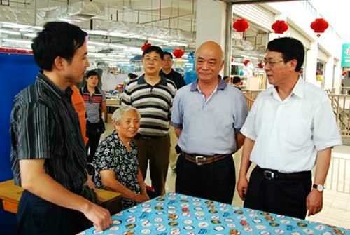 6月10日上午,无锡市人大常委会主任周解清一行,在朝阳集团董事长张海良、总经理杨兴德和副总经理王爱群的陪同下,实地考察了南禅寺槐古路商业区,并重点考察了朝阳农贸市场。周解清主任肯定了朝阳农贸市场这一崭新的商业态势,对南禅寺商贸区不断提升档次、不断发展壮大寄予厚望。