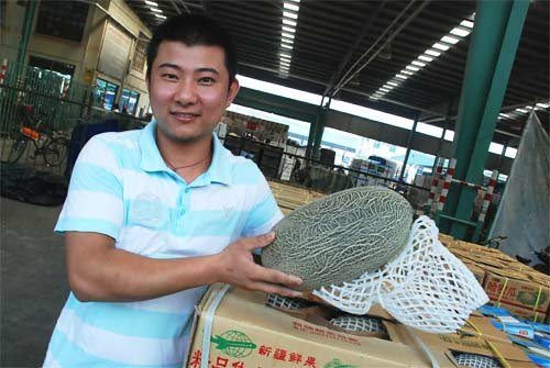 刚过小暑,无锡朝阳农产品大市场瓜香四溢,这是来自新疆的哈密瓜散发的馨香。
