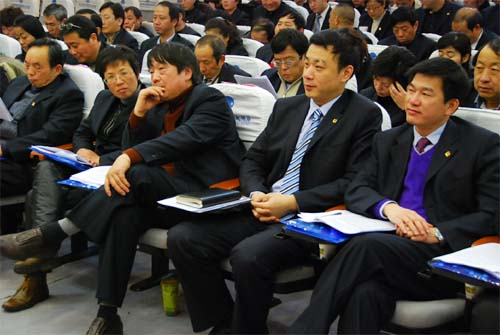 在主席台就坐的有集团公司老、中、青三代领导集体,张海良先生众望所归继续留任董事长,集团公司党、政、工主要领导完成了新老交替的重任,此次年会上以全新阵容亮相,50后、60后、70后齐上台。各基层企业也经过长期考察、培养,大胆起用年轻同志担当主角外,各下属的部门、门店负责同志也呈现了承上启下、继往开来的全新局面。特别是天惠超市公司,通过近年来积极引进“知识型、年轻化”的“新鲜血液”,一批充满活力、忠于职守、热爱企业的年轻同志已经成为各连锁门店的主力军。全新的阵容,不仅体现和兑现了“能干事者有机会,干成事者有舞台”的企业承诺,而且推陈出新真正成为“朝阳”希望之所在。