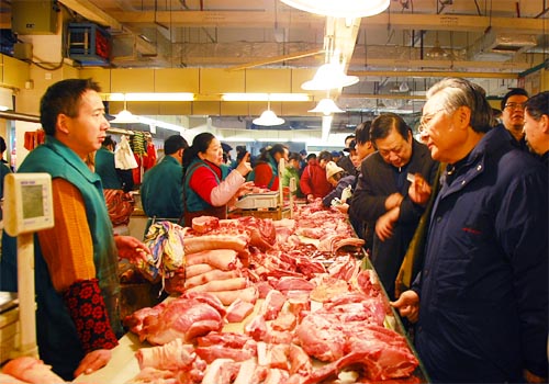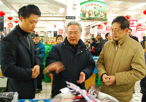 春节前夕,无锡市政协主席贡培兴率工商局、商务局、食品药品监督管理局等部门领导,专程来到无锡朝阳农贸市场视察春节供应、食品安全情况。