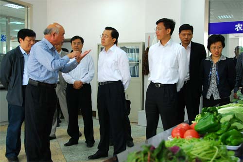 在检测中心,朱副市长详细询问了蔬菜农药残留检测流程,对即将启动实施的蔬菜追溯体系充满期待,并高度赞扬朝阳集团与基地农业生产者联合实施的农超对接工作。