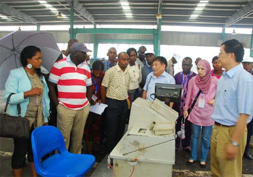 xk官方网站总经理杨兴德向非洲客人们热情介绍了市场农产品流通的实际操作过程,尤其是现场正在调试的电子结算系统更是引起了非洲朋友的浓厚兴趣。双方还就共同感兴趣的农产品进出口业务进行了深入探讨,共商合作事宜。