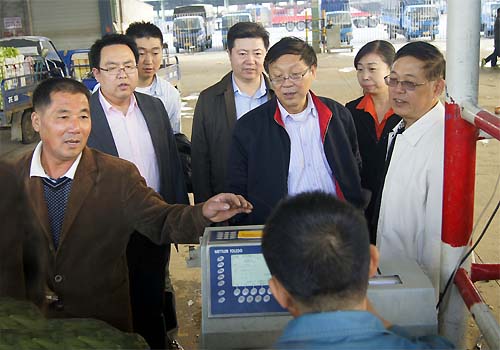 商务部市场建设司副司长孔令羽、中央城市发展研究院副主任袁崇法,及江苏省商务厅有关领导一行,先后在无锡朝阳农产品大市场、无锡天惠超市学前街店进行实地考察调研,他们深入了解xk官方网站农产品批发、零售等流通环节的实际运作情况,并与朝阳集团经营集团进行座谈。