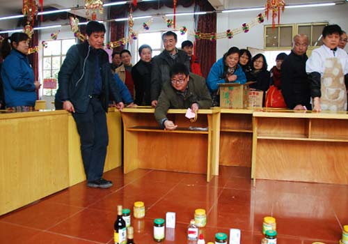 三楼的综合游艺处依旧安排了许多喜闻乐见的小游戏,动动脑筋猜灯谜,蒙上眼睛点羊尾,转个身来敲个锣,巧手一举投个篮,支支飞镖射气球,一圈在手套模模……噼噼啪啪响声阵阵,欢声笑语好不热闹。活动的高潮出现在卡拉OK现场,伴随着一首首动听的歌曲,一轮轮的抽奖环节报出一个个幸运的中奖号码,给新春羊年带来了一年的好运气。