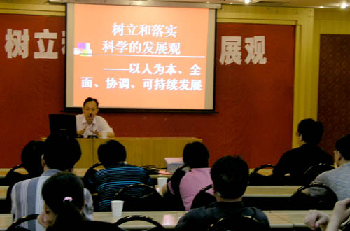 报告深入浅出地阐述了中央确立科学发展观的意义,详细阐明了科学发展观的内涵和要求,并结合现阶段本地区的发展战略和机遇、发展过程中遇到的问题进行了分析。