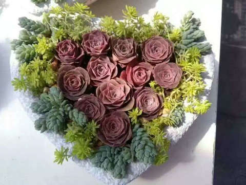 如今,用各类多肉拼成的造型拼盘,用多肉配饰串成的手串、项链等衍生品,也成为当季的热销商品。