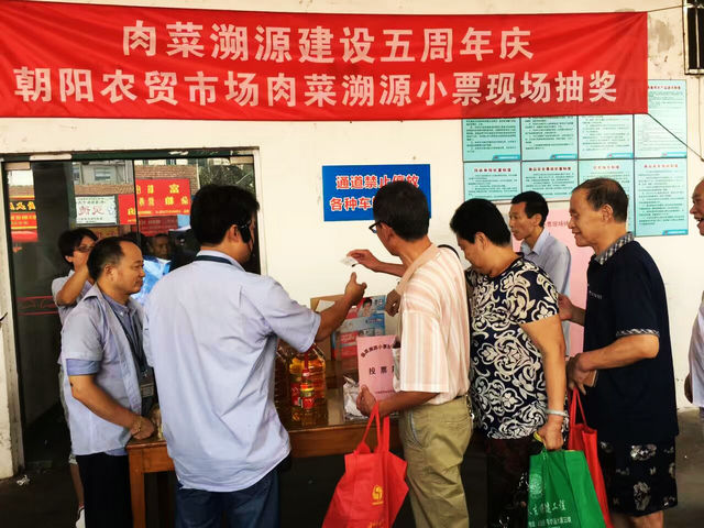 自2011年以来,xk官方网站肉菜溯源体系已经实施五周年。9月13日上午,朝阳农贸市场在南大门组织举办了肉菜溯源小票现场抽奖活动。 活动前期,市场已通过多种方式将活动详情告知市民,并征集到了前三天市民在朝阳农贸市场蔬菜区、鲜肉区的购物小票。在今天的活动现场,市场现场召集了50位消费者进行抽奖。活动共抽取了50张中奖小票,其中前10张为一等奖,40张为普通奖,并分别设置了相应的奖品。中奖名单已在市场内公示,中奖者可凭身份证到市场办公室领奖。  肉菜溯源体系实施五年来,朝阳农贸市场现使用可溯源型网络电子秤350台,覆盖蔬菜312个摊位和肉类38个摊位。这些电子秤的日出票数总约8万张,最高可达26万张。消费者可以方便得获得购物票据,并通过市场内的触摸式查询机,输入溯源码获得产地信息及有关检测信息,同时与批发市场检测数据实现互动。朝阳农贸市场已先后组织了多场溯源小票抽奖活动,增强了市民购物索票维权意识,有效规范了市场经营者诚信经营行为。 无锡阿福台、无锡日报、江南晚报、无锡商报、经济电台、梁溪之声电台等媒体记者纷纷到场进行了采访报道。