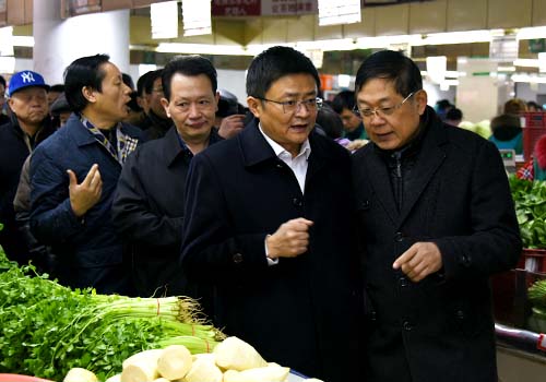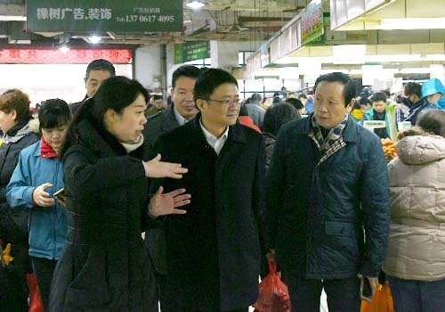 距离春节越来越近,年味越来越浓,无锡朝阳农贸市场成为锡城老百姓采办农副产品的首选之地。1月12日(腊月十五)上午,梁溪区区长秦咏薪带领区政府有关部门到朝阳农贸市场视察节前供应工作。xk官方网站董事长张君君、总经理杨兴德陪同视察。 秦区长一行视察了市场一楼、二楼各区域的农副产品供应情况,并非常关心农副产品的货源渠道及食品安全情况。集团领导向秦区长汇报了朝阳农贸市场对进场农产品的货源追溯、市场准入、二次检测、索证索票等方面所作的工作,并邀请秦区长查看了在水产区、肉类区每个摊位安装的监控探头图像。秦区长对朝阳农贸市场在保障货源供应、保障食品安全方面的工作给予了充分肯定,并希望市场在春节供应高峰期间确保做好各方面的供应保障和安全保卫工作,让老百姓买得开心、买得放心。