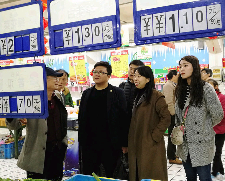 下午,一行人又来到位于市中心南禅寺旁的朝阳农贸市场,先后参观了农贸市场一楼、二楼各经营区域、市场信息机房和天惠超市朝阳店。张董事长向考察团详细介绍了朝阳农贸市场“低进严管”的运营管理模式和在菜价管理、质量溯源、物联网建设、配套服务等方面的做法和经验。考察团一行对朝阳农贸市场既规范又精细的管理体系非常感兴趣,对农贸市场的菜价管理和天惠超市的平价菜赞不绝口,认为我集团在市场建设上注重发挥菜篮子的公益作用具有典型的示范性。他们表示要把朝阳经验带回去,在北京“菜篮子”建设中发挥更好的作用。 最后,双方在农贸市场正门口合影留念,为此次考察画上了圆满的句号。