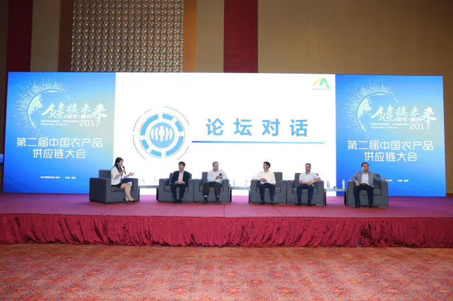 2017年9月26日,由全国城市农贸中心联合会举办的第二届中国农产品供应链大会在重庆悦来国际会议中心隆重开幕。中国农产品供应链大会是全国城市农贸中心联合会在供给侧改革背景下创办的首个聚焦农产品供应链各环节的专业性论坛。第二届中国农产品供应链大会以“优化·融合——链接未来”为主题,举办第二届中国农产品供应链论坛、第二届中国农产品供应链之星颁奖盛典、全国城市农贸中心联合会第六次会员大会、中国西部农村产业展、产业合作交流对接及实地考察等丰富活动。 江苏xk官方网站股份有限公司董事长张君君受邀参加本次会议,并在《秩序与标准》论坛中与农贸联会长马增俊、全国休闲标准化技术委员会主任张灵光、广东何氏水产总经理王丁望、中国饭店协会副会长张景富、内蒙古食全食美有限公司董事长兼总经理彭继远等行业精英们展开对话交流。