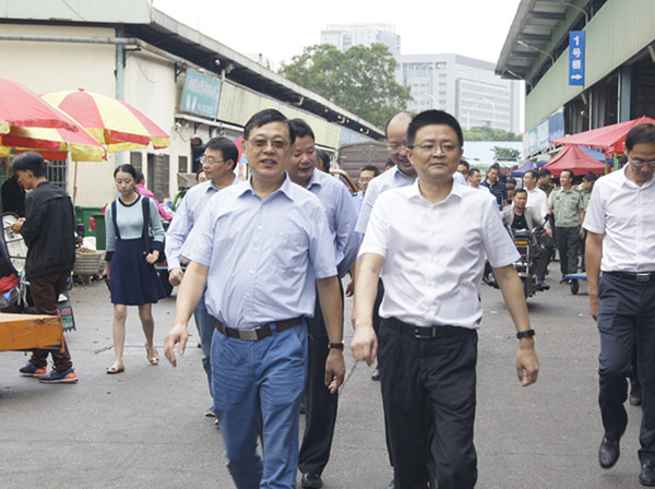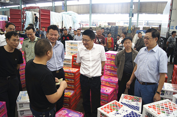 9月28日,无锡市梁溪区委副书记、区长秦咏薪一行到朝阳农产品大市场开展中秋、国庆节前安全检查慰问,xk官方网站总经理杨兴德热情接待了秦区长一行。