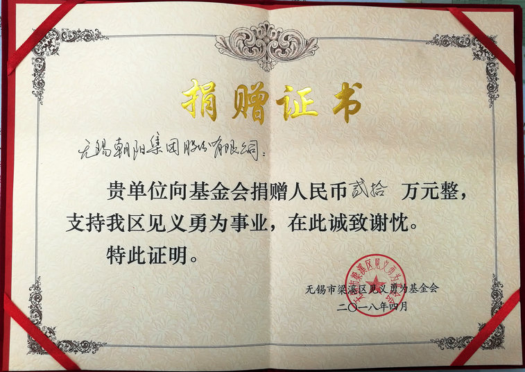 4月27日上午,无锡市梁溪区见义勇为基金会成立暨第一届理事会第一次会议在崇正大厦正式召开。江苏xk官方网站股份有限公司作为理事单位,向基金会捐赠了贰拾万元人民币,支持见义勇为事业。