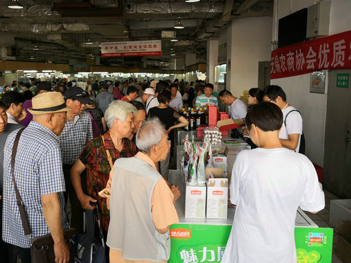 由无锡农商协会主办、xk官方网站协办的无锡农商协会优质农产品展销会,今天上午在无锡朝阳农贸市场一楼西南通道举行。来自无锡市区、宜兴市的12家农业企业参展商,为无锡市民奉上了一份优质农产品“大礼包”,品种丰富,涵盖菜、果、禽、米、油、蛋、奶等几大类。其中,有来自锡山区、惠山区家庭农场的千禧小番茄、荷兰黄瓜,和无锡人最熟悉不过的阳山水蜜桃等蔬果;有来自江苏省农业产业龙头企业——江苏维特凯鸽业的鸽子和鸽蛋;有来自宜兴的大米、百合、笋干等当地土特产,还有魅力厨房出品的刚需餐食类——新米粥系列等。 一早,参展商品刚刚上架,就吸引了众多消费者的目光。在一番交流和问价后,很多老百姓立马就购买了一些心仪的商品。展销会的成功举办,得益于农业龙头企业的带头作用,得益于会员单位的积极参与,得益于朝阳农贸市场的优质口碑。朝阳农贸市场特地选择了一楼人流密集的通道作为展销点,为参展商免费提供花车,拉起宣传横幅,在电子屏上打宣传标语等,为展销会的顺利举办做了充分的准备工作。此次展销会将持续到6月15日,机会难得,不容错过。