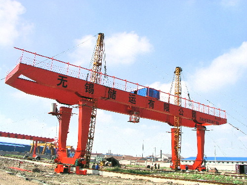 备受关注的储运公司新建铁路专用线工程传来喜讯,继8月21日一台20吨L型单梁门式起重机上梁安装完工后,昨天,又一台大型起重设备——32吨H型双梁门式起重机顺利上梁安装到位。上午10时38分,随着一声哨响,只见悬在半空的巨型箱式大梁与高高耸立的门吊支腿徐徐合拢,顿时,欢庆的鞭炮声此起彼伏响彻整个物流配套园区,标志着我新建铁路专用线项目主要设施的基本到位,整个建设工程己初具规模,随着后期铁路的接岔贯通和其它配套设施相继到位,不久该专用线项目即将具备作业条件。让我们期盼着这一天的早日到来吧!