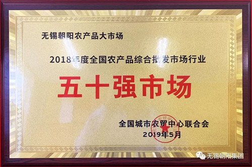 无锡朝阳农产品大市场荣登全国农产品综合批发五十强市场榜单