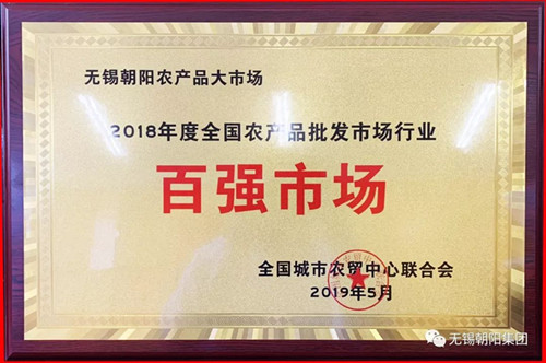5月23日,由全国城市农贸中心联合会主办的“2019年中国农产品批发市场行业年会”在湖北武汉召开。会上,无锡朝阳农产品大市场荣获“2018年度全国农产品综合批发市场行业五十强市场”、“2018年度全国农产品批发市场行业百强市场“称号。