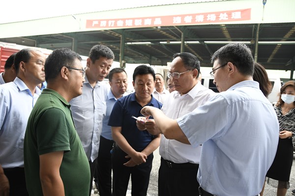 考察团一行先后参观了朝阳陈列馆、三中心、蔬菜、水果两大市场、冷库、北二库及粮油市场,深入了解了公司近年来的建设发展以及甘肃农产品在市场的销售情况。在蔬菜市场兰州货区域,来访一行还与客商进行了亲切交谈。