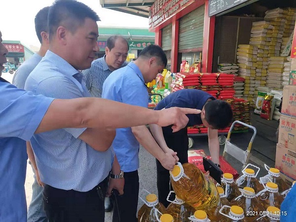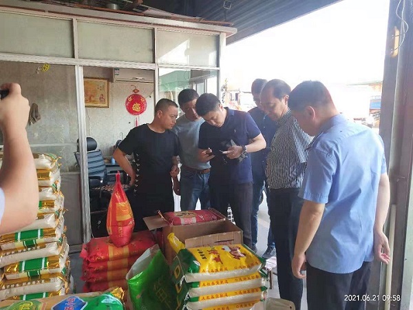 6月21日上午,无锡市市场监督管理局党组成员李维一、黄巷分局局长张雷等一行6人到无锡朝阳粮油市场进行全面检查,市场总经理徐军热情接待了检查组一行。