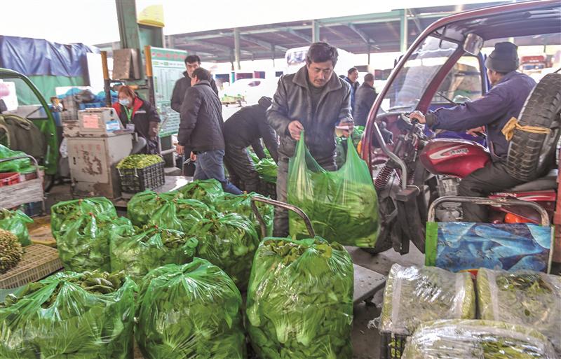 从市价格监测认定中心对市区十家农贸市场的监测数据来看,蔬菜、猪肉、鸡蛋的价格均处于回落中。8日,43个蔬菜监测品种每斤均价6.51元,较春节前下跌0.91%。“为确保市场供应量足价稳,我们落实了蔬菜产地、基地储备,批发市场动态储备,天惠超市配供中心库存储备的三级储备机制。”朝阳农产品大市场相关负责人介绍,在雨雪天气之前主动衔接各生产基地,调节货源,提前备货,还加大了白菜、白萝卜等自营商品到位力度(如图)。