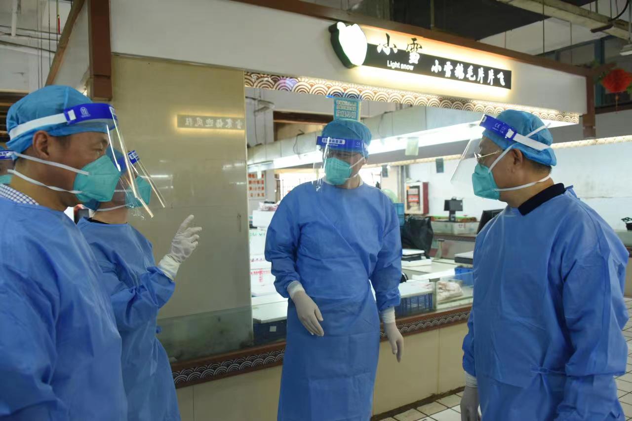7月10日上午,无锡市委常委、统战部部长周常青带队,到朝阳农贸市场督查市场防疫消杀工作进展情况。梁溪区副区长周晓红、区防疫指挥部和清名桥街道有关领导、朝阳集团总经理杨兴德等陪同检查。 周常委身着防护服,亲自进入到朝阳农贸市场一楼、二楼,仔细查看各区域环境卫生和商品物品情况。在集团三楼会议室,周常委听取了各部门近期的工作汇报,并不时提问和交流。最后他强调了几点:一是入户消毒要更细化更精准。二是要加强巡查督查。三是农贸市场消杀要彻底。要加快消杀进度,消杀后要做深度清洁,并做好灭四害工作。集团总经理杨总表示,朝阳农贸市场将严格遵照上级要求,做好市场方方面面的消杀工作,共克时歼。 |