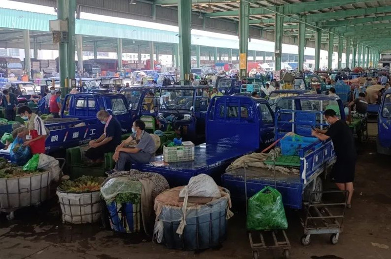 在蔬菜市场可以看到,在原有五号棚以本地菜为主的经营模式下,市场进一步挖掘本地菜产量,通过菜农之间的互相介绍增加本地蔬菜供应量,同时及时高效地与政府相关部门协调合作,开辟本地菜绿色通道,使本地菜能够保量,快速,高效地进入朝阳市场,填补疫情时期的紧缺危机。与此同时,市场着眼于后续稳定保供,未雨绸缪,积极进行外地菜产地货源联系,发动外地菜供应商在产地的资源优势,提前让外地供应商多进货;市场员工在原有的代理自营模式下,积极与合作产地联系,调配全国各地大宗蔬菜产地货源进入朝阳市场,保证了全市每天两千多吨的蔬菜供应,多渠道并行,形成稳定有效的储备供应方案,极大降低了供应风险,充分展现了朝阳的工作作风:雷厉风行、求真务实、政令畅通、快速高效。 在保证蔬果运输供应大局稳定的基础上,为应对疫情带来的突发情况,朝阳农产品大市场建立了灵活的工作机制。走进市场,一辆辆半挂车、冷藏车排列整齐,客商、小工热火朝天地从车上卸下新鲜蔬果,这样的场景在这里每天都在发生。为保证车辆能够正常进入市场,公司积极对接上级部门,加强与路政、交通等部门沟通协调,通过申请疫时通、办理临时通行证等措施,为市场内调外销保驾护航,及时化解买菜难和卖菜难等问题,保障商品“进得来、运得走、供得上”。