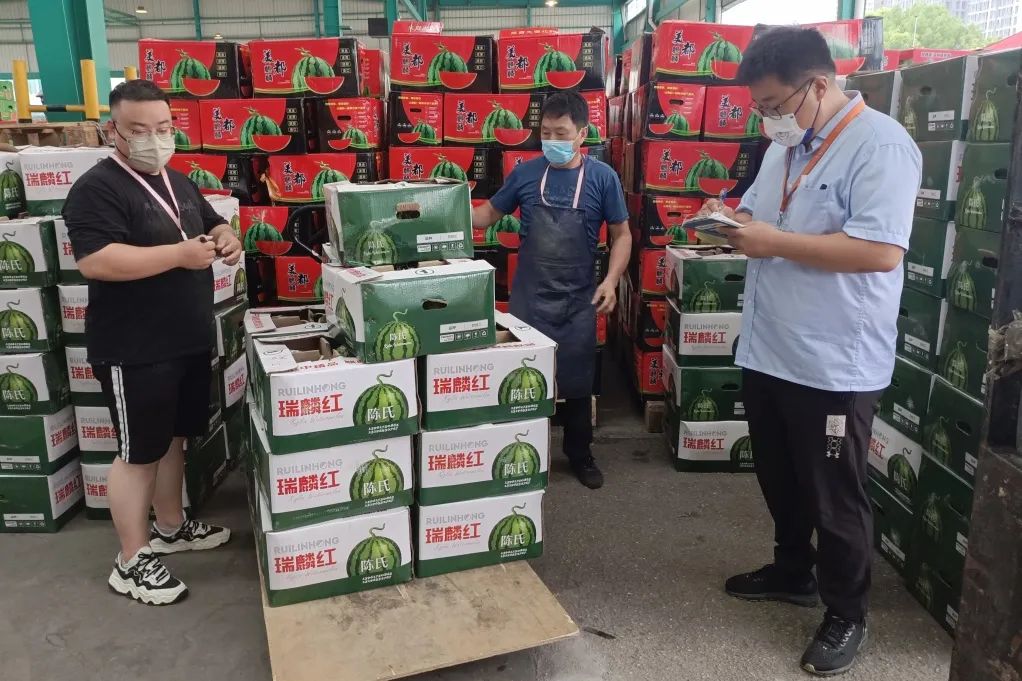 此外,市场发挥场地优势,采取冷库保鲜及现场销售的混合模式,以目前每日蔬果供应量的两倍进行动态存量储存,随时应对广大市民的“菜篮子”供应需求,此举快速稳定地平抑了市场价格。蔬菜方面,均价稳定在1.7元/斤,与往年同期相比也属于中低价位,主力品种价格稳定,其中土豆、甘蓝包菜、生菜均价分别保持在1.1元/斤、1.2元/斤和1.9元/斤左右;水果方面,西瓜、葡萄、水蜜桃等夏季时令水果均价分别保持在2元/斤、8元/斤和7元/斤左右。总体来说,蔬果价格并未因疫情影响而大幅波动,朝阳农产品大市场不折不扣地完成了“菜篮子”工程的两大核心任务:保证供应量,稳定市场价格。 为保证市内外会员正常拿货,市场还特别推行了“代采购 代配送”服务,即会员与客商达成交易后,由市场员工牵头,负责安排车辆运送至目的地,此举不仅成功联通了市场、供应商与会员,成功探索了一条保供“新链条”,更确保疫情时期商品能够正常流入终端市场,真正形成安全、有序、共赢的“疫时供应新局面”。