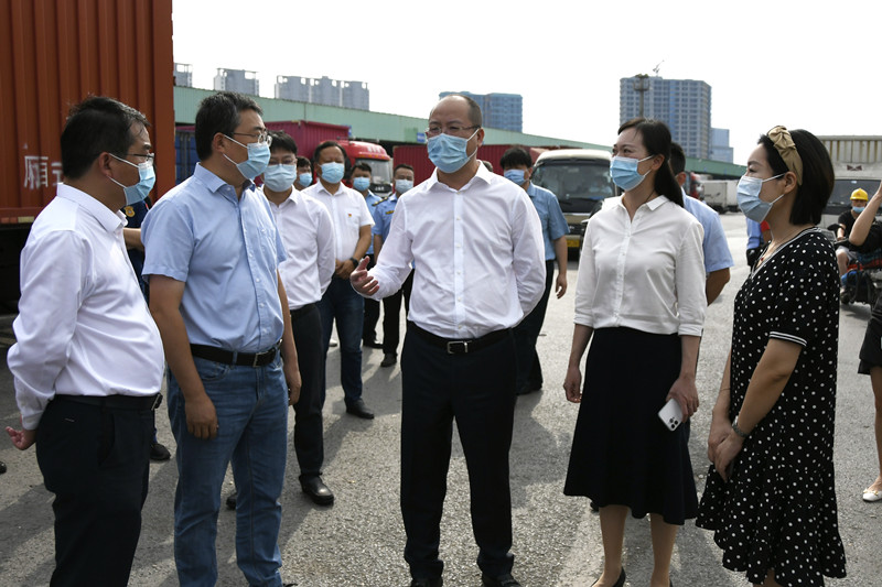 朱书记先后来到朝阳陈列馆、信息中心、水果市场、中停车场,认真听取了朝阳农产品大市场在疫情防控、货源组织、保障供应等方面的具体举措,详细询问了市场对人、车、物的管控情况,市场人员的核酸采样情况及中高风险地区来锡人员的应急处置措施,朱总逐一进行了汇报。