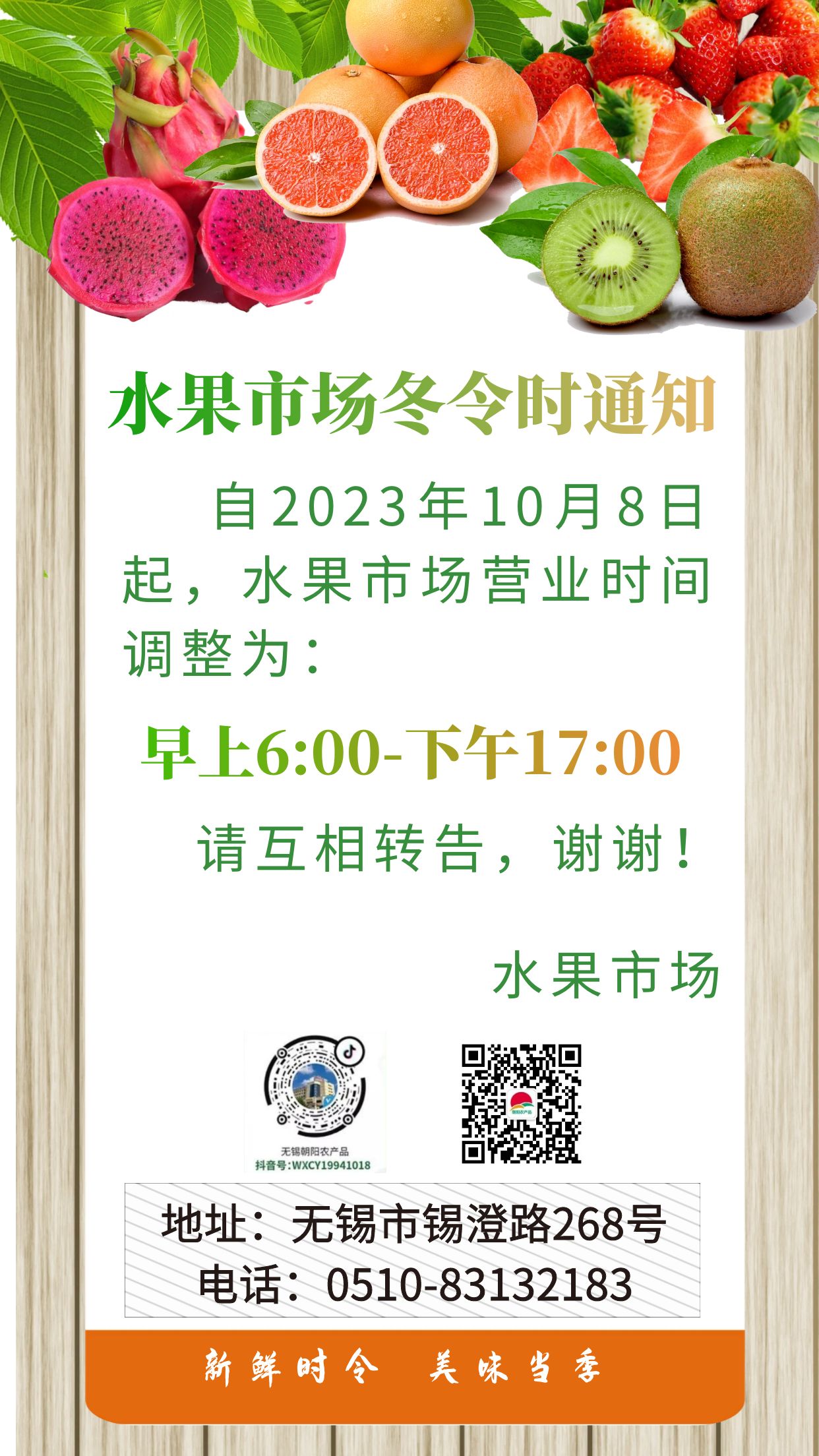 朝阳股份水果市场营业时间调整通知