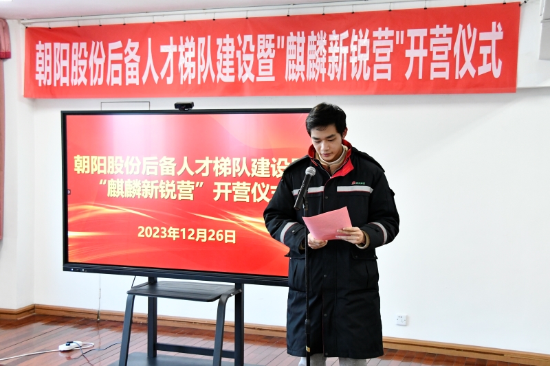 12月26日下午,朝阳股份后备人才梯队建设暨“麒麟新锐营”开营仪式在锡澄大厦5楼隆重举行。“麒麟新锐营”21位营员、朝阳股份班子成员参加仪式,集团董事长张庆卿先生受邀参加本次活动并发表重要讲话。朝阳股份总经理朱健祥主持了本次仪式。