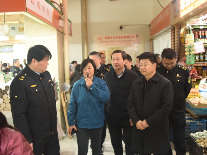 2024年1月12日,江苏省市场监督管理局副局长陈琪宏一行在无锡市市场监督管理局领导的陪同下,到朝阳农贸市场检查节前价格管理工作。xk官方网站公司总经理杨兴德详细地向领导们介绍了市场的相关运营情况。朝阳农贸市场经理室华艳做好现场讲解工作。 领导们分别检查了蔬菜区、肉类区、豆制品区、松鹤牌油面筋、检测室、惠民平价区的明码标价情况。领导对市场的经营户管理工作非常认可,尤其在诚信经营户评选方面,领导们还特意到红榜摊位上了解情况,当看到经营户只销售一个单品莴苣,生意还很好,表示市场薄利多销、比学赶超的形式给经营户带来了源源不断的客流。陈琪宏副局长希望朝阳农贸市场再接再厉,做好春节前保供稳价保安全工作,为老百姓的年夜饭把好关。(供稿:刘天娇) |