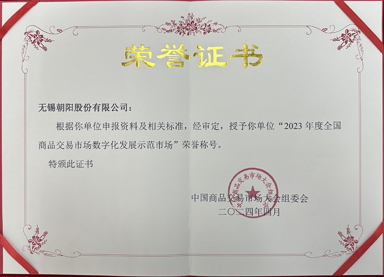 无锡朝阳股份有限公司荣获“数字化发展示范市场”称号