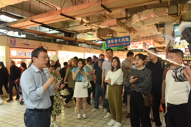 在朝阳农贸市场,华经理向学员们介绍了朝阳农贸贯彻集团公司“为民、便民、利民”的办场宗旨,勇挑“保供、稳价、保安全”的菜篮子重担,采取“低进严管”的管理策略,运用现代技术手段实现了毛利管控、肉菜扫码溯源、诚信计量、能源管控、电子眼安保等市场运营管理特色,营造了消费者放心、经营户安心、社会公众满意的共赢共荣局面,朝阳农贸市场也成为无锡市区一个极具代表性的样板市场。