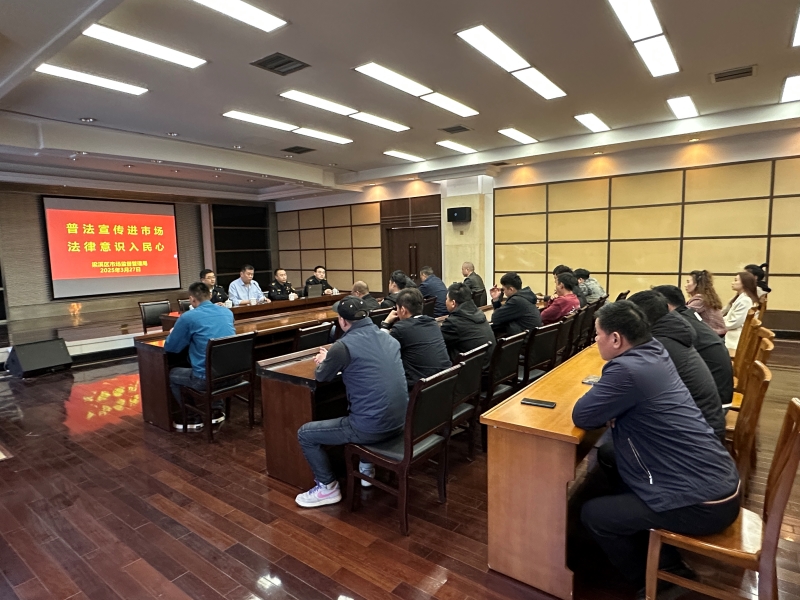 为加强市场经营户法律法规意识、提高合规性经营行为、促进依法经营,3月27日下午,朝阳股份特邀梁溪区市场监督管理局执法稽查科苑威科长、执法大队郑源林科长、瞻江分局顾韬副局长一行到大市场开展“普法宣传进市场 法律意识入民心”主题宣讲活动。活动由朝阳股份工会主席尤勇主持。