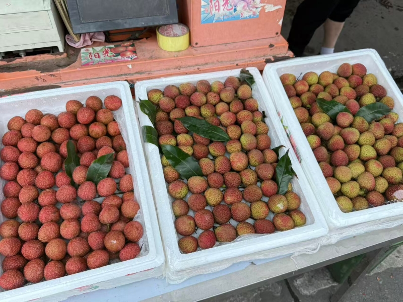 近三日,在场整车荔枝巅峰时期同时到货38车,个别客商当日到货5车、在途2车,荔枝整体交易量环比上周上升一成多,价格持续“跳水”,目前妃子笑荔枝单价9.8元/斤,环比上周下降23.4%;白糖罂荔枝单价11.4元/斤,环比上周下降31.4%,市民翘首以盼的“荔枝自由”触手可及。