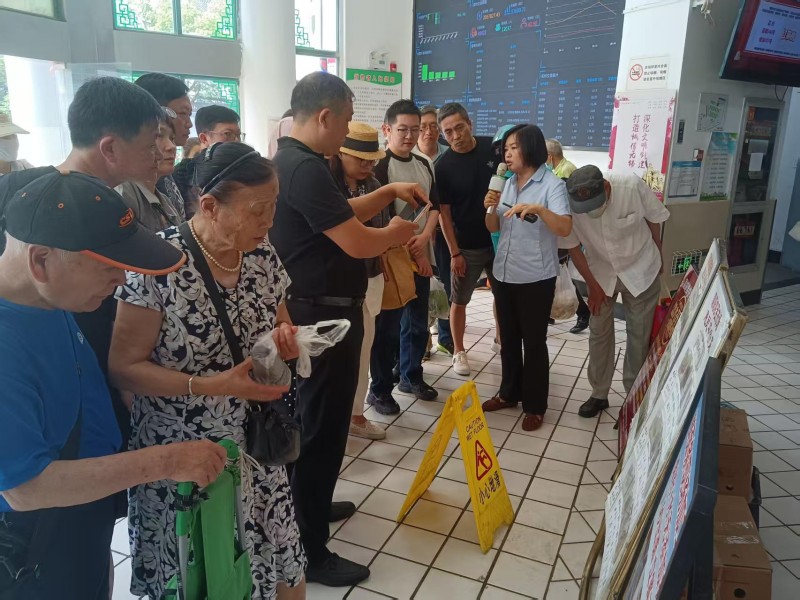 6月17日上午,南京市鼓楼区政协委员一行10人到朝阳农贸市场参观考察,为推动市场优化升级、提升民生服务建言献策。朝阳农贸市场经理华艳热情地接待了来访领导。 华经理首先带领领导们来到智慧大屏前,详细介绍了关于市场经营数字化建设、保供稳价保安全的具体工作,并到摊位上亲自体验了手机扫码查询商品溯源信息的全过程;随后委员们参观了肉类、粮油综合、豆制品、水产等区域参观了一摊一眼安保系统,大家对朝阳农贸市场的管理工作赞不绝口,尤其是当看到密密匝匝的客流,惠民平价区的排队长龙,纷纷表示:质优价廉、诚信经营、数字化建设就是朝阳农贸市场客流量的保证。