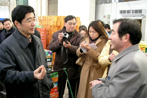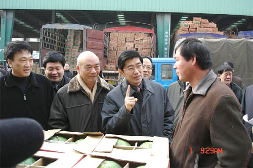 2月1日上午,无锡市市长毛小平、市委副书记张锦贤、副市长麻建国、黄继鹏,以及市政府各职能部门的领导,来到朝阳农产品大市场了解春节供应情况,慰问市场职工和农产品经营户。