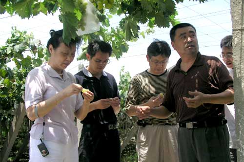 过去我市出产的葡萄品种主要从地理、气候条件相近的日本引进,而近年新“加盟”的则是“欧亚杂交”品种,原产地在东欧。由于两地自然条件差异较大,对种植技术、田间管理提出了更高要求。近几年蠡园葡萄协会加大了对果农的培训力度,定期从北京等地聘请农业专家前来授课,并加快了新技术推广。今年夏季持续高温干旱,蠡湖街道的果农普遍使用了“控果技术”、“滴灌技术”等,使千余亩葡萄种植园安渡难关。据介绍,今年不同品种的“双虹”牌葡萄总产量可达1500吨以上,其中优质葡萄(特级和一级品)预计占80%以上,比过去有很大增长。