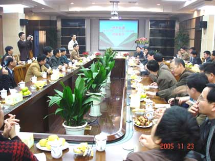 朝阳集团总经理杨兴德向到访的领导和客人介绍了朝阳集团企业发展情况,特别是公司在市场建设、改制和信息化建设方面取得的经验和成效。