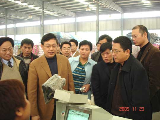 11月23日,浙江省农林厅产业信息处组织浙江省农产品产销协会、浙江省市场协会一行60多人,在江苏省农林厅、无锡市农业局领导的陪同下,到无锡朝阳农产品大市场参观考察。