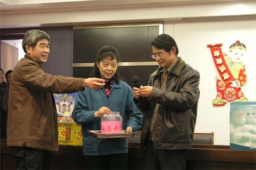 部分基层干部和集团公司的党委书记、副董事长等领导同志还高兴地为参加活动的职工抽奖。共抽出特等奖二个、一等奖5个、二等奖10个、三等奖20各、五等奖30个,中奖比例达到了参加活动人员总数的五分之一,凡没有中奖的同志也都获得了纪念奖。