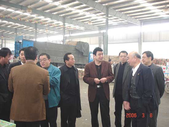 新疆客人实地参观了锡澄市场2.5万平方米的交易大厅。张董事长、杨总经理分别向新疆客人介绍了朝阳集团近年来的经营、管理和发展情况。